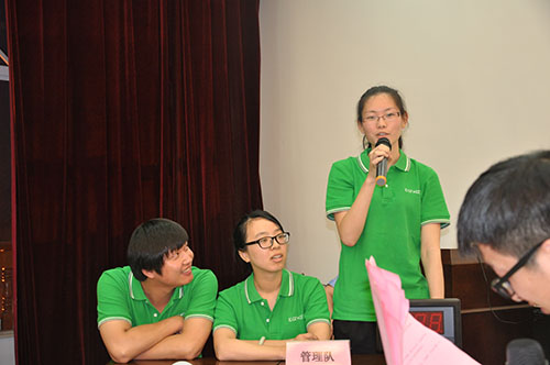 本报训(通讯员 高维霞)为加强安全生产管理工作,提高全体员工的安全意识,6月26日,巨鹰集团在办公大楼5楼会议室举办了“安康杯”安全生产知识竞赛,总部、制衣、凯蒂、科技、鹰星、房产6支代表队共18名选手参加竞赛 。集团公司总裁傅金国、集团公司党委书记周金梅、集团公司副总裁俞能伟、凯蒂公司副总经理陆亚莲、经贸副总经理杨霞、集团公司技术创新中心主任韩莉红、鹰星企管办主任杜配满担任此次知识竞赛的评委。