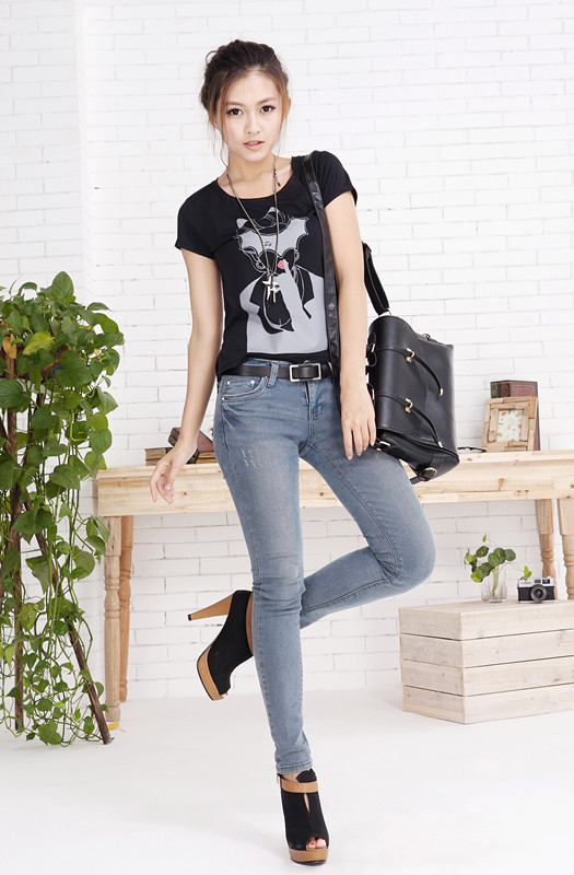 Gecom2013年夏装女装宽松圆领蝙蝠袖时尚个性印花百搭短袖T恤